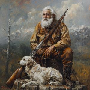«A rustic vintage image of an old full bodied mountain man with b...»
