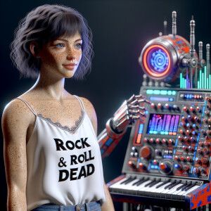 «Photorealistic. A stunning 23-year-old woman dances with a retro...»