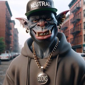«"Create an image of a character that's half-goblin, half-goon, w...»