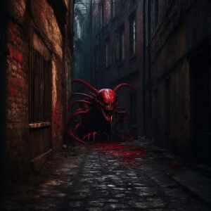 «" cartoon text says 5k, A grotesque, skeletal / venom creature w...»