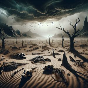 «A tube tv with the word “GAG” on the screen in a burning down ho...»