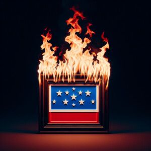 «Fire starting from bottom of the screen, lighting an American fl...»