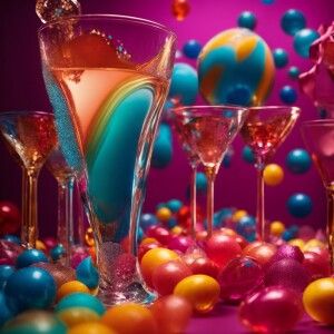 «Imagine a champagne coupe glass in vibrant candy colors, complet...»