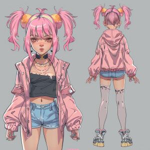 «Create a character design for an anime girl with unique pink hai...»