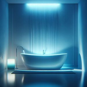 «White bath with blue light lamp»
