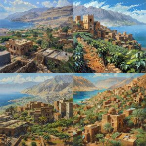 «Yemeni architecture, village with coffe farms around mountains a...»