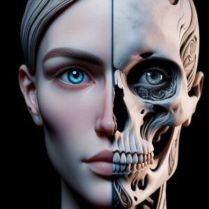 «Create a female, the right half of which looks like a woman skel...»