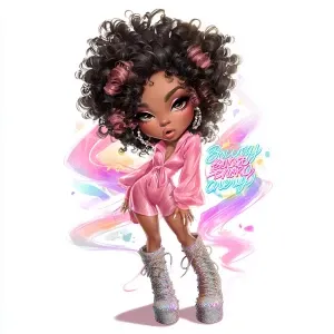 «A glossy, high-resolution chibi African American diva with a rad...»