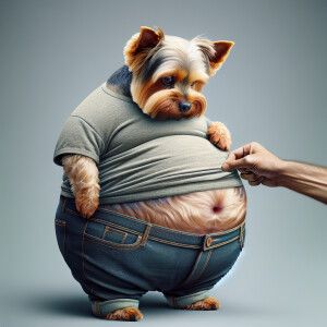 «A cute yorkie, round and looks very fat. Yorkie’s expression loo...»