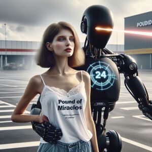 «Photorealistic. A stunning 23-year-old woman dances with a retro...»