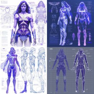 «Create a detailed blueprint schematic of a Super Woman, outlinin...»