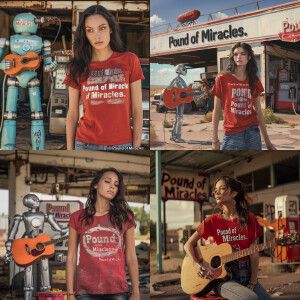 «Photograph of gorgeous 23-year-old brunette wearing a red T-shir...»