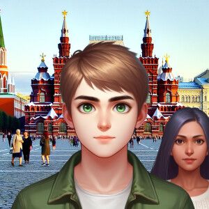 «Создай персонажа с карие-зелеными глазами, на заднем фоне Красна...»