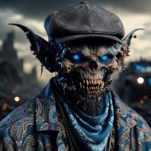 «"Produce a detailed and photorealistic portrait of a goblin with...»