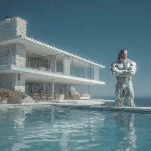 «A hyper-realistic depiction of a muscular, older male bodybuilde...»
