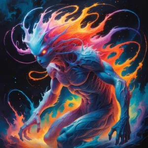 «An otherworldly vivacious amoeba blob creature, its translucent...»