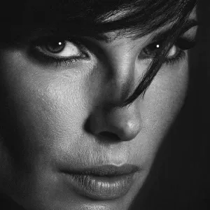 «Ultra close-up, Sandra Bullock, noir style»