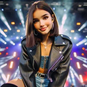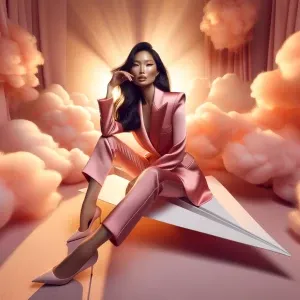 «A confident woman with long dark hair sitting gracefully on a mo...»