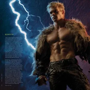 «20-year-old man, blond-ginger hair color, chest hair, in the rai...»