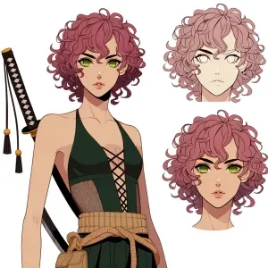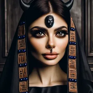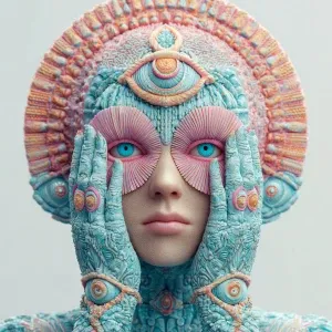 «A woman with huge eyes and multiple arms, symmetrical body, colo...»