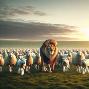 «Create a picture of a lion, dressed in traditional Hebrew clothi...»