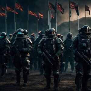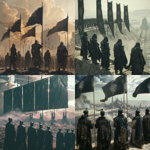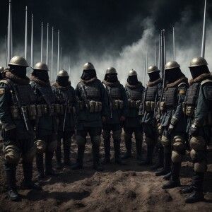 «Generate a picture of 5 Muslim army generals with their backs sh...»