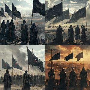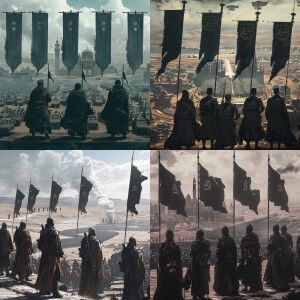 «Generate a picture of 5 Muslim army generals with their backs sh...»