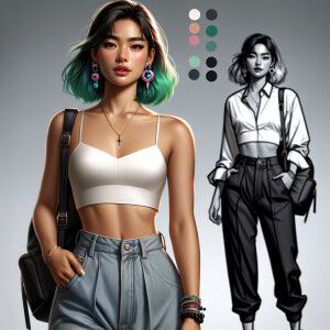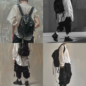 «The person is wearing a white shirt, black pants, and has a blac...»