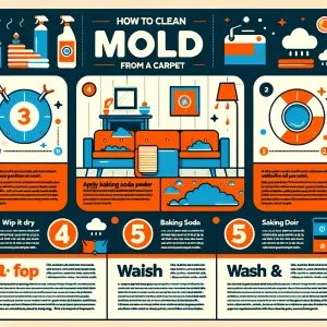 «Create a 16:9 infographic of a Mold infested carpet. It should b...»