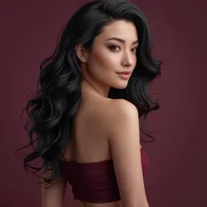 «A hyper-realistic studio portrait of my face with long wavy blac...»