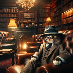 «cat in a tuxedo, fedora hat, rose in pocket,, Thompson in hand,...»
