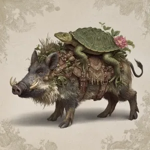 «Wild boar with an alligator tail, snapping turtle shell, and fro...»