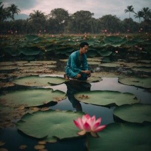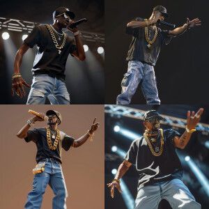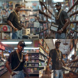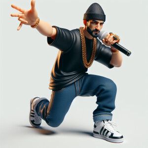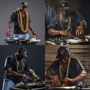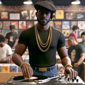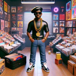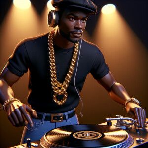 «3D image of a DJ from the 90’s he wears a gold top chain around...»