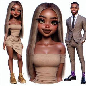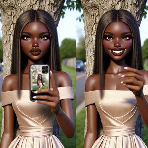 «3D image of a young LIGHT SKIN African American woman, she has l...»