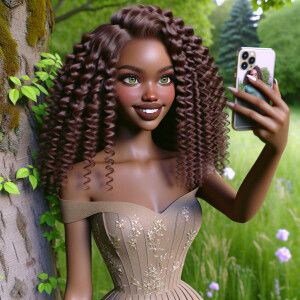 «3D image of a LIGHT SKIN young African American girl whose stand...»