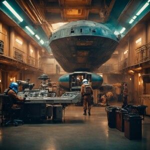 «humorous scene. Star Wars walker command room. officer and two a...»