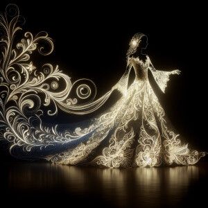 «A mesmerizing white light drawing of a female silhouette. She we...»
