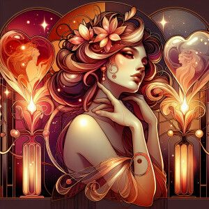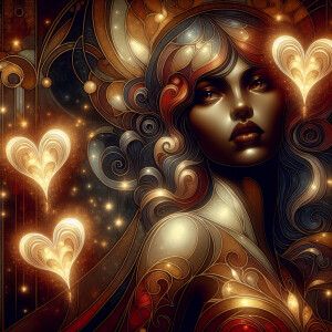 «An Art Nouveau illustration of a beautiful Love Goddess,, two go...»
