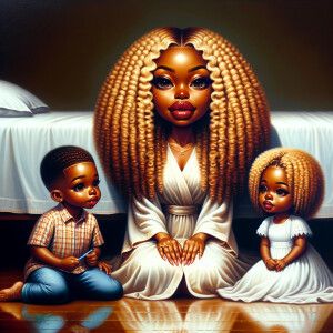 «Hyper realistic glossy very detailed oil painting chibi African...»