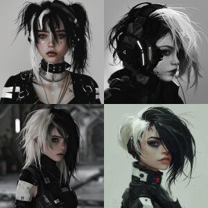 «Try to create an emo girl with messy black-to-white hair with cy...»
