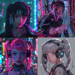 «Try to do a cutest schoolgirl in cyberpunk style, describe cuten...»