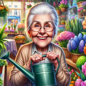 «Funny and crazy caricature of a 95 year old American grandma in...»