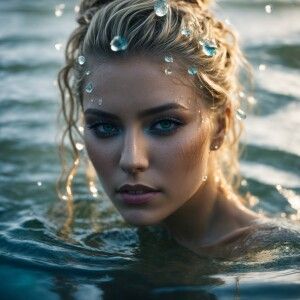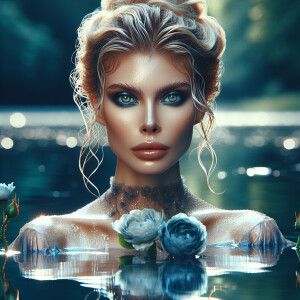«the essence of a caucasian woman with blonde hair emerging from...»