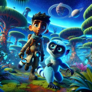 «A boy and a blue-furred lemur cross the mountains. Along the way...»