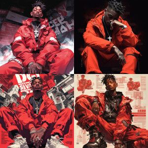 «"The rapper 21 savage face and wearing stylish red outfit sitti...»
