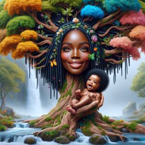 «Create a close-up, hyper-realistic 3-D oil painting of a tree wi...»