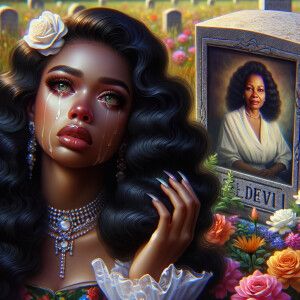 «Create a digital artwork showing a half-portrait of a light-skin...»