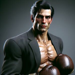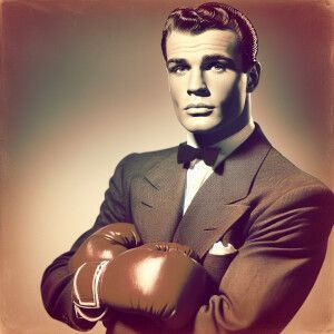 «Rocky balboa wearing a suit and boxing gloves»