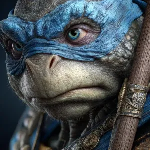 «Ninja turtle, Leonardo, 8K 3D hyper-realistic hyper-detailed mic...»