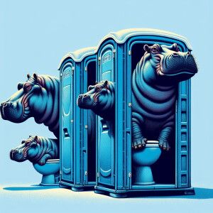 «три бегемота, два больших , а один поменьше, выходят из биотуале...»